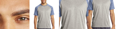This moisture-wicking, snag-resistant tee combines two heather colors for a unique colorblock design.